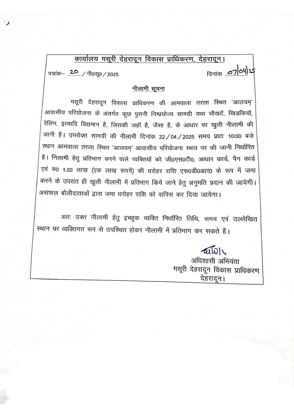 April 7, 2025Auction of Useless material of Aalayam Housing Project, Aamwala Tarla (Download- Notice) Read More MDDAAdminNews & Updates
